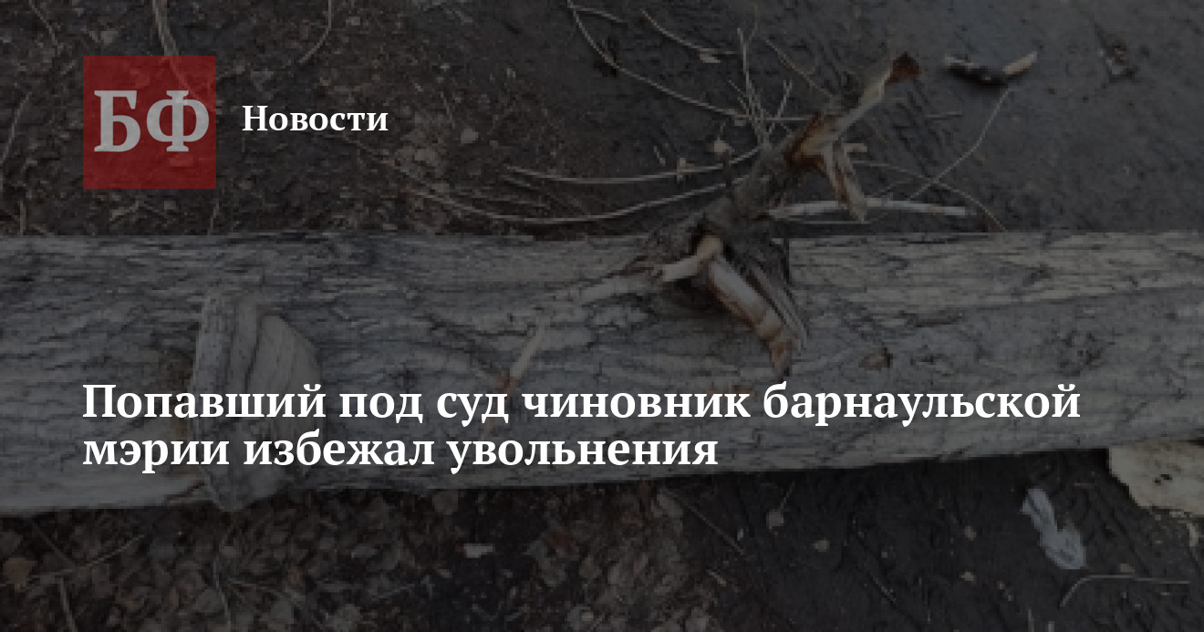 В администрации Барнаула не стали расторгать трудовой договор с главным специалистом отдела благоустройства и озеленения профильного городского комитета, которого сейчас судят за гибель случайного прохожего из-за падения сухого дерева. Это следует из ответа пресс-службы мэрии на запрос ИА «Банкфакс». Какие-либо меры в отношении обвиняемого будут приниматься только на основании выводов суда.