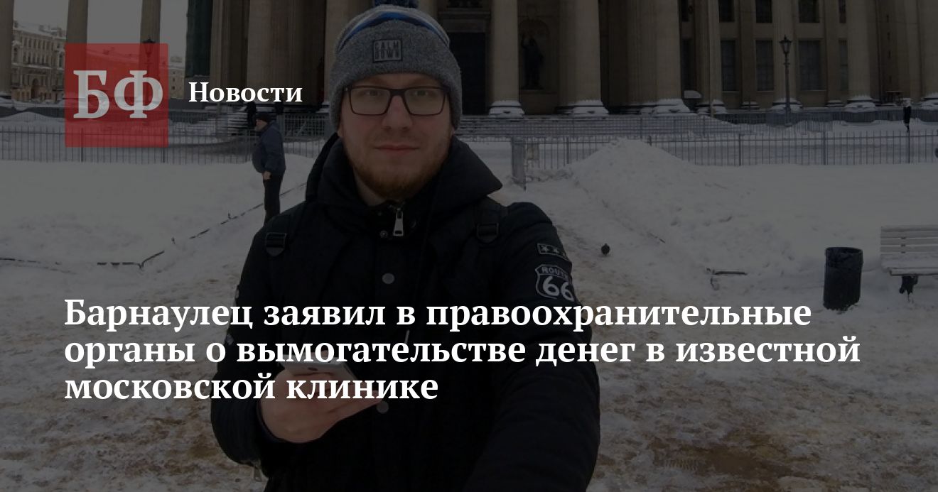 Житель Барнаула Олег Григорьев не смог провести операцию на сердце в Национальном медицинском исследовательском центре сердечно-сосудистой хирургии им. А.Н. Бакулева в Москве, куда он был направлен по квоте, из-за возможного вымогательства денег. Об этом мужчина рассказал в своем Instagram. По словам Григорьева, хирург, который должен был его оперировать, запросил крупную сумму на личный счет, чтобы гарантировать наиболее благоприятный исход. Барнаулец отказался пойти на поводу у врача, поскольку стоимость операции и нахождения в центре оплачивалась квотой, и заявил о случившемся в прокуратуру, следком и МВД.