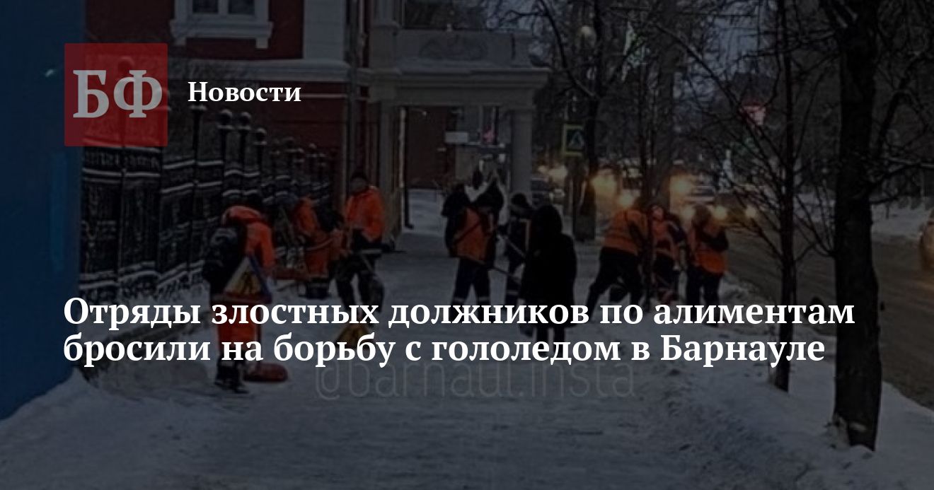 Управление Федеральной службы судебных приставов продолжает привлекать должников, имеющих алиментные обязательства, к работам по благоустройству Барнаула. На сей раз более 200 нарушителей отправились убирать улицы от снега и льда. В ведомстве полагают, что таким образом они не только приносят общественную пользу, но и осознают необходимость соблюдения закона. Впрочем, горожане слабо верят в то, что этот «десант» способен спасти утопающий в снегу Барнаул, поскольку пока это не под силу даже мэрии.