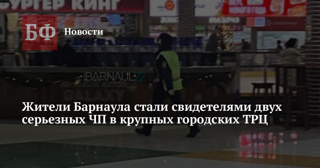 Накануне вечером барнаульцы сообщили в Сети, что в ТРЦ Galaxy закрыли вход для посетителей — в здании работали сотрудники полиции и кинологи. По имеющейся информации, правоохранители проверяли сообщение о возможном минировании. В то же время в другом крупном городском ТРЦ, по сведениям из соцсетей, произошла кровавая потасовка между сотрудниками и посетителем. Причиной конфликта якобы стал отказ предъявить QR-код. В пресс-службе ГУ МВД по краю корреспонденту ИА «Банкфакс» пообещали прокомментировать данные события позже.