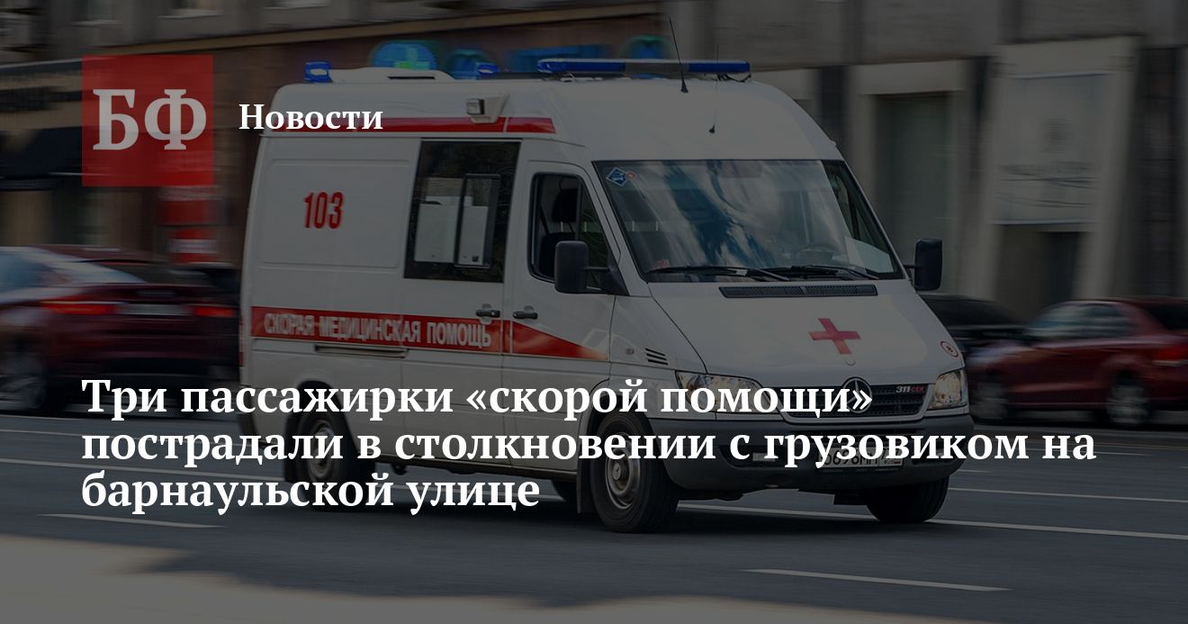 По информации ГИБДД, инцидент произошел 28 декабря в 17:15 в районе здания № 59 «Е» по улице Власихинской. 34-летний водитель грузового автомобиля Toyota Dyna не уступил дорогу карете «скорой помощи», которая двигалась с включенными звуковыми и световыми сигналами. В результате произошло столкновение, в котором пострадали три пассажирки из автомобиля медиков: две женщины 30 и 42 лет и 16-летняя девушка. Помощь им оказала на месте другая бригада врачей, прибывших на место ДТП. Госпитализация никому не понадобилась. По факту случившегося проводится проверка.
