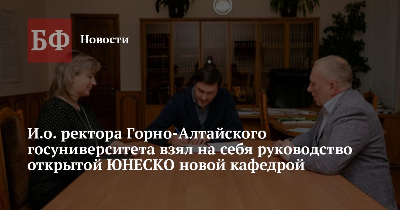 О том, что в ГАГУ откроется упомянутая кафедра ЮНЕСКО, университет сообщал еще на минувшей неделе. Глава МИДа РФ и председатель комиссии РФ по делам ЮНЕСКО Сергей Лавров вручил Главе Республики Алтай Олегу Хорохордину соглашение о создании в ГАГУ кафедры устойчивого развития горных территорий. «Почти четверть природных объектов территории нашего региона находится под охраной ЮНЕСКО, поэтому считаю это соглашение важным этапом дальнейшего плодотворного сотрудничества Республики Алтай с этой авторитетной международной организацией и еще одним шагом в развитии нашего университета», — комментировал тогда Хорохордин. Сейчас стало известно, что эту статусную кафедру возглавит и.о. ректора Виталий Недельский. Планы работы подразделения он должен представить в январе 2022 года.