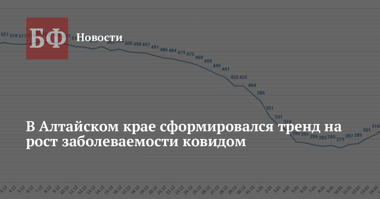По результатам тестирования на COVID-19, 17 января в Алтайском крае зарегистрировали 339 зараженных. Барнаул — 120, Бийск — 43, Рубцовск — 17, Первомайский район — 12, Быстроистокский район — 10, Баевский район — восемь, Мамонтовский, Павловский районы — по семь, Камень-на-Оби, Поспелихинский, Чарышский районы — по шесть, Красногорский, Романовский, Рубцовский, Тальменский, Троицкий, Угловский районы — по пять, Курьинский, Локтевский, Тюменцевский, Хабарский районы — по четыре, Новоалтайск, Алтайский, Бийский, Ключевский, Кулундинский, Родинский, Смоленский, Усть-Пристанский районы — по три, Заринск, Змеиногорский, Зональный, Косихинский, Михайловский, Немецкий национальный, Солонешенский, Топчихинский, Шелаболихинский районы — по два, Алейск, Славгород, Завьяловский, Заринский, Кытмановский, Ребрихинский, Советский, Солтонский, Целинный районы — по одному.