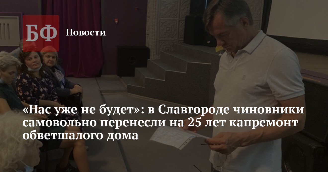 Депутат Госдумы РФ, лидер регионального отделения партии «Справедливая Россия — За правду» Александр Терентьев выразил возмущение ситуацией с переносом сроков капремонта многоквартирного дома по улице Луначарского, 121 в Славгороде. Как сообщает реготделение эсеров, запланированные на 2017−2019 год работы отодвинули на 2041−2043 годы без обсуждения с собственниками. Неправомерность этого решения по запросу алтайского думца подтвердила прокуратура и, по сведениям партийцев, уже направила представления в органы городской и краевой власти.