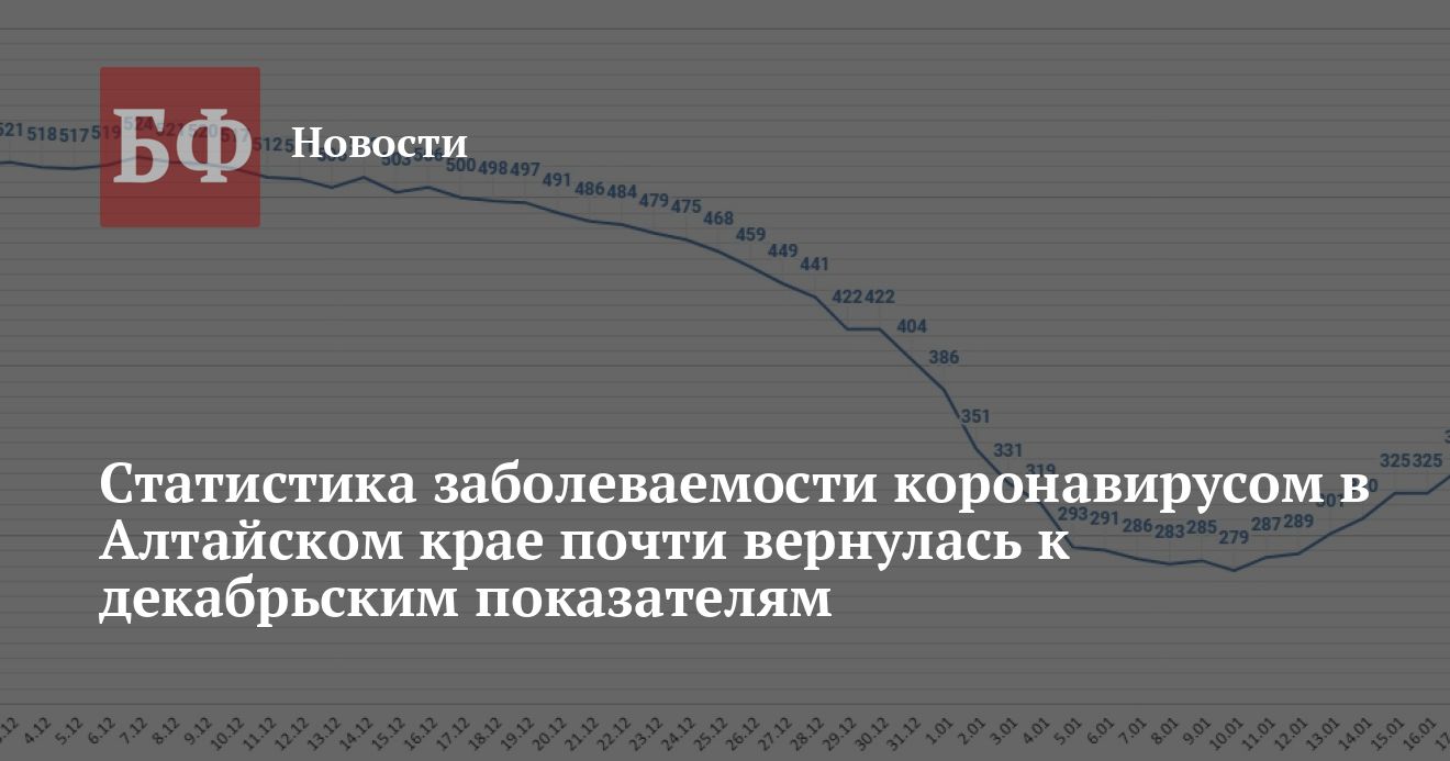 Из 381 нового случая 110 выявили среди жителей Барнаула, 37 — в Бийске, 26 — в Рубцовске, 15 — в Благовещенском районе, по 13 — в Новоалтайске и Немецком национальном районе, по 11 — в Первомайском и Рубцовском районах, по восемь — в Заринске, Быстроистокском, Кулундинском и Панкрушихинском районах, по семь — в Славгороде и Мамонтовском районе, шесть — в Шелаболихинском районе, по пять — в Завьяловском, Курьинском, Тальменском и Тюменцевском районах, по четыре — в Белокурихе, Заринском, Косихинском, Михайловском и Солтонском районах, по три — в Баевском, Зональном, Павловском, Поспелихинском, Романовском, Троицком, Усть-пристанском и Целинном районах, по два — в Алтайском, Бийском, Волчихинском, Егорьевском, Ключевском, Советском, Тогульском и Топчихинском районах, по одному — в Алейске, Камне-на-Оби, Бурлинском, Ельцовском, Красногорском, Петропавловском, Ребрихинском, Родинском, Смоленском, Табунском, Угловском, Хабарском и Шипуновском районах. В общей сложности за все время пандемии в Алтайском крае коронавирусом заразились 126 150 человек, выздоровели — 107 956. Умерли 8563 пациентов, в том числе 24 — за последние сутки. Из них 7101 человек погиб непосредственно от COVID-19, а 1462 — по иным причинам.