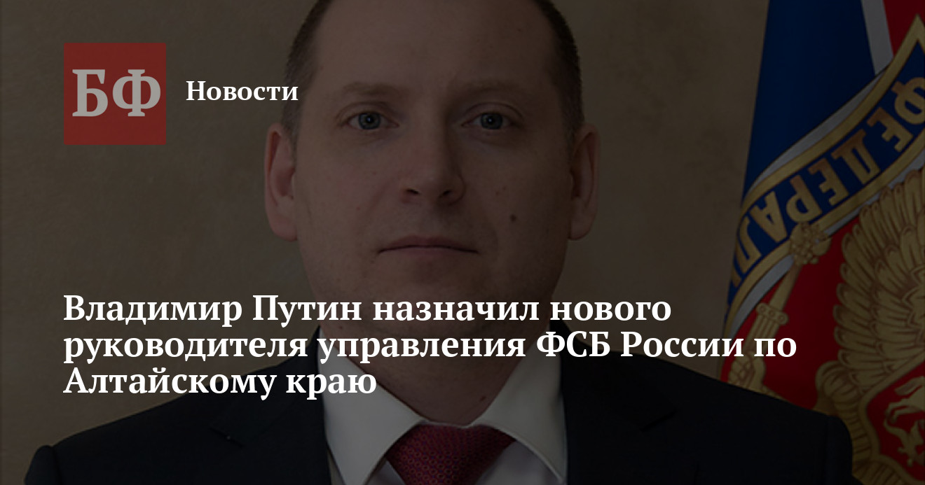 На пост начальника управления ФСБ по Алтайскому краю по Указу президента РФ Владимира Путина назначен Роман Плотников. Ранее он возглавлял УФСБ России по Республике Алтай.