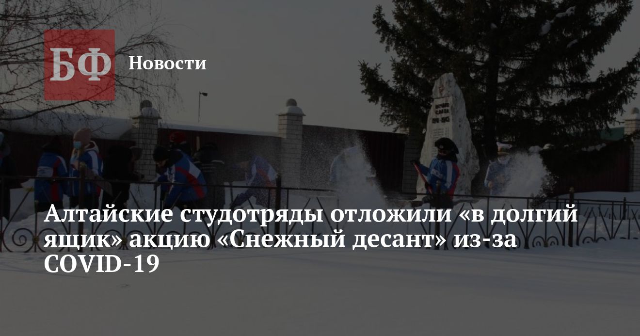 Однако все эти приготовления не помогли провести акцию в установленные сроки — ее решили перенести в связи с неблагоприятной эпидемической обстановкой в регионе по COVID-19. „Снежный десант“ имеет большое значение как для жителей нашего региона, так и для самих бойцов. Но здоровье участников мероприятий, которые проводит „Алтай Молодой“, для нас в приоритете. Из-за того, что рост заболеваемости ковидом стремительно пошел вверх, принято решение перенести выезд студентов в районы Алтайского края», — заявила Четошникова. Когда теперь состоится выезд студентов — не уточняется.