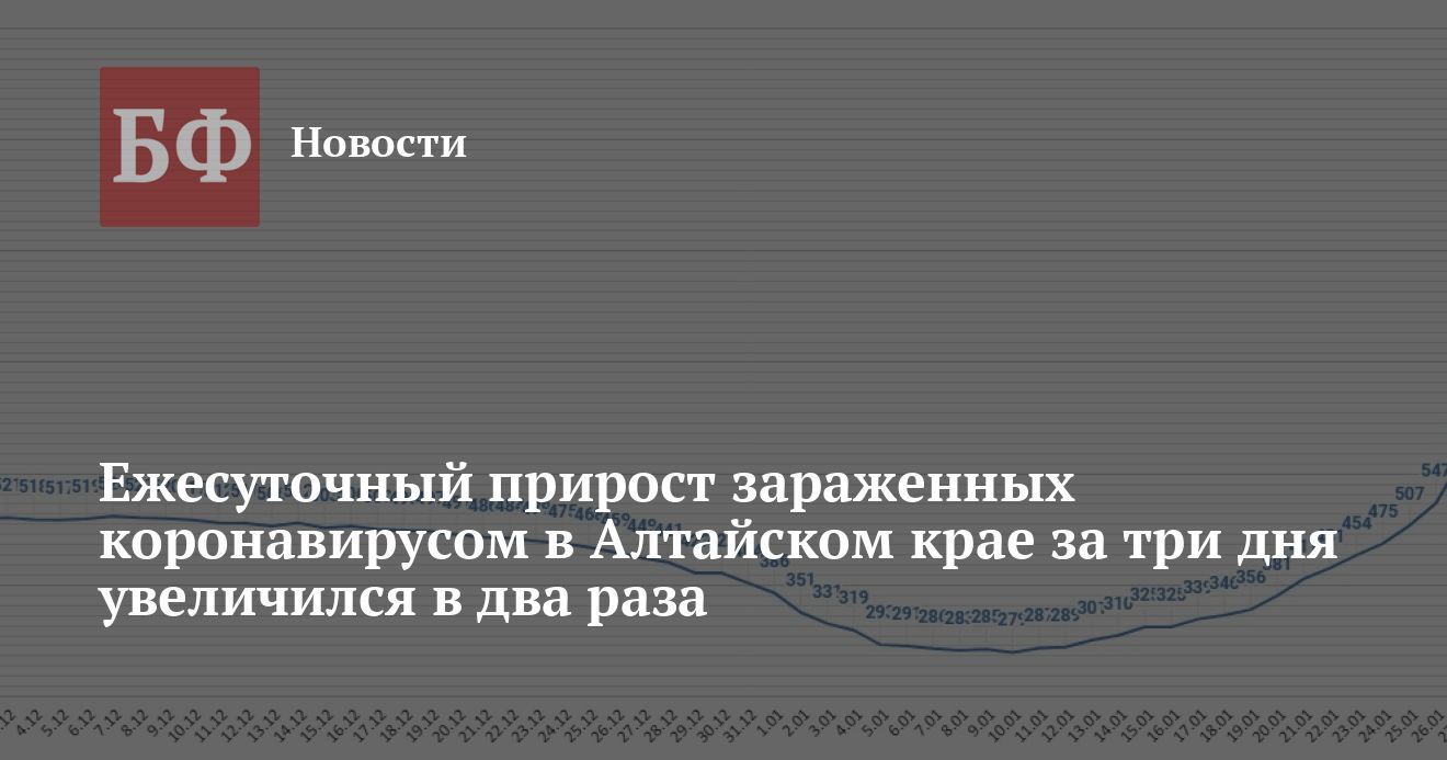 Из 3203 случаев заражения 807 выявили 28 января, 1107 — 29 января, а 1289 — 30 января. Лидерами среди муниципалитетов по суточному приросту числа зараженных по-прежнему остаются Барнаул (1759 случаев), Бийск (302) и Рубцовск (137). Таким образом, общее число заразившихся за все время пандемии составило 132 806 человек, выздоровели — 110 072. Скончались 8818 человек, из них 7348 умерли непосредственно от COVID-19, а еще 1470 — по иным причинам.