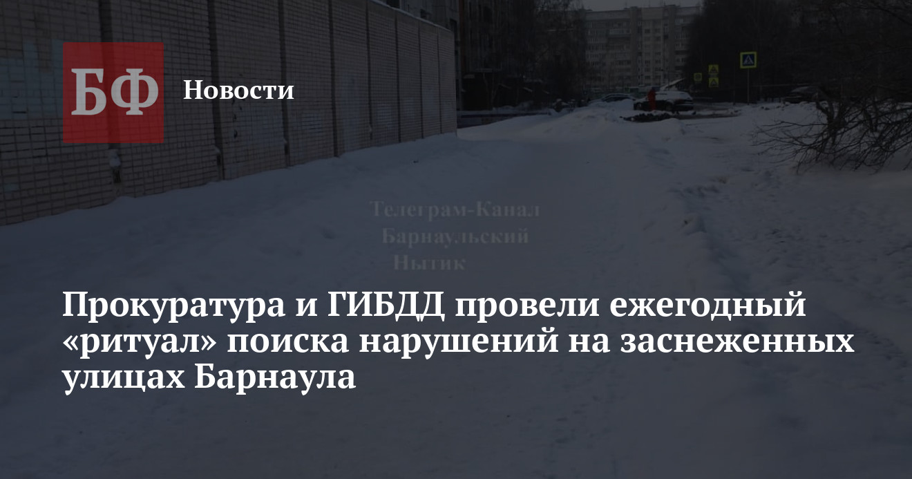 Администрация Барнаула получила очередное представление от прокуратуры по результатам проверки качества очистки городских дорог от снега и наледи. Представители надзорного ведомства и ГИБДД нашли множество нарушений ГОСТа, о чем сообщает «Алтапресс» со ссылкой на сайт краевой прокуратуры. Подобные рейды проводятся каждый год и, как следует из публикаций, каждый год приводят к выводам о ненадлежащей работе профильной организации, но к лучшему это ситуацию не меняет.