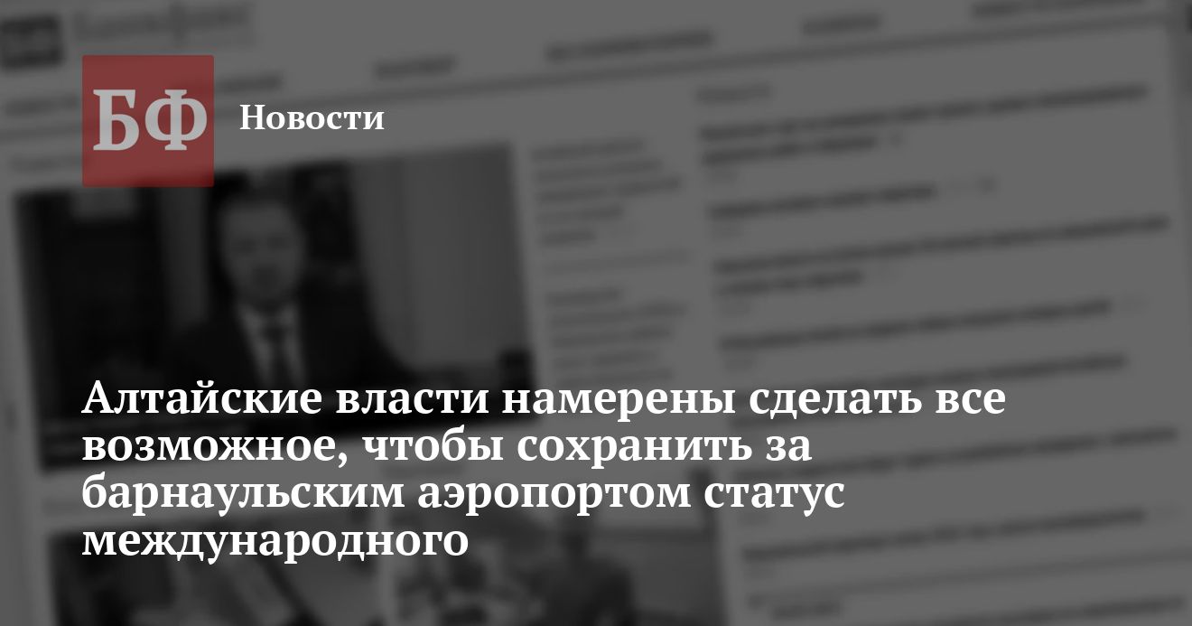 Первый заместитель главы администрации Алтайского края Владимир Германенко на прошедшей не так давно пресс-конференции заявил о том, что краевые власти намерены всеми силами добиваться сохранения международного статуса барнаульского аэропорта. «Нельзя допустить, чтобы Барнаул стал запасным воздушным портом для новосибирского Толмачево», отметил Владимир Германенко.