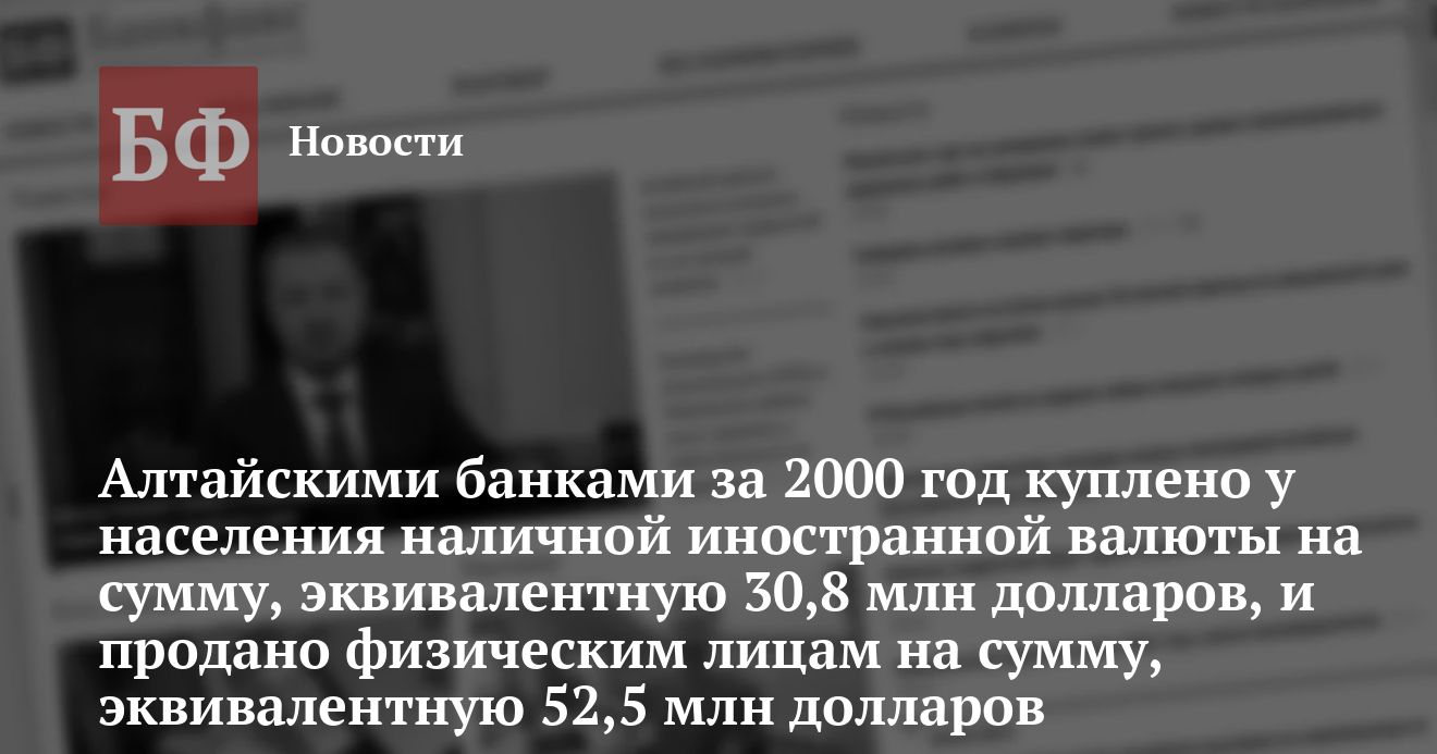 По данным Главного управления Центрального банка России по Алтайскому краю, операции с наличной иностранной валютой занимают наиболее значительный сегмент валютного рынка. На территории Алтайского края количество подразделений уполномоченных банков и филиалов, совершающих валютно-обменные операции, в течение 2000 года значительно не изменялось.