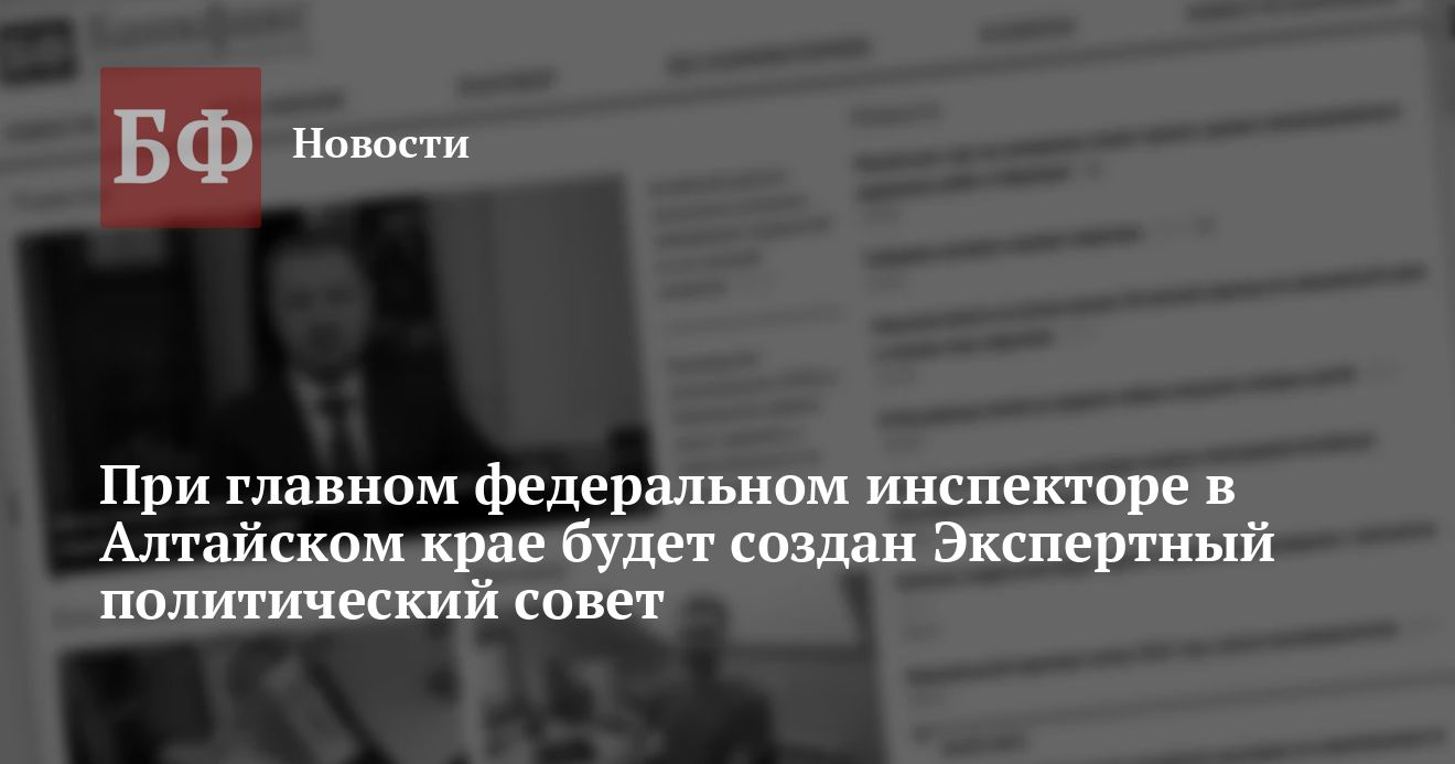 Как сообщил пресс-секретарь главного федерального инспектора (ГФИ) в Алтайском крае Константин Филатов, в настоящее время в ведомстве ГФИ ведется разработка проекта создания Экспертного политического совета, который будет действовать при ведомстве.