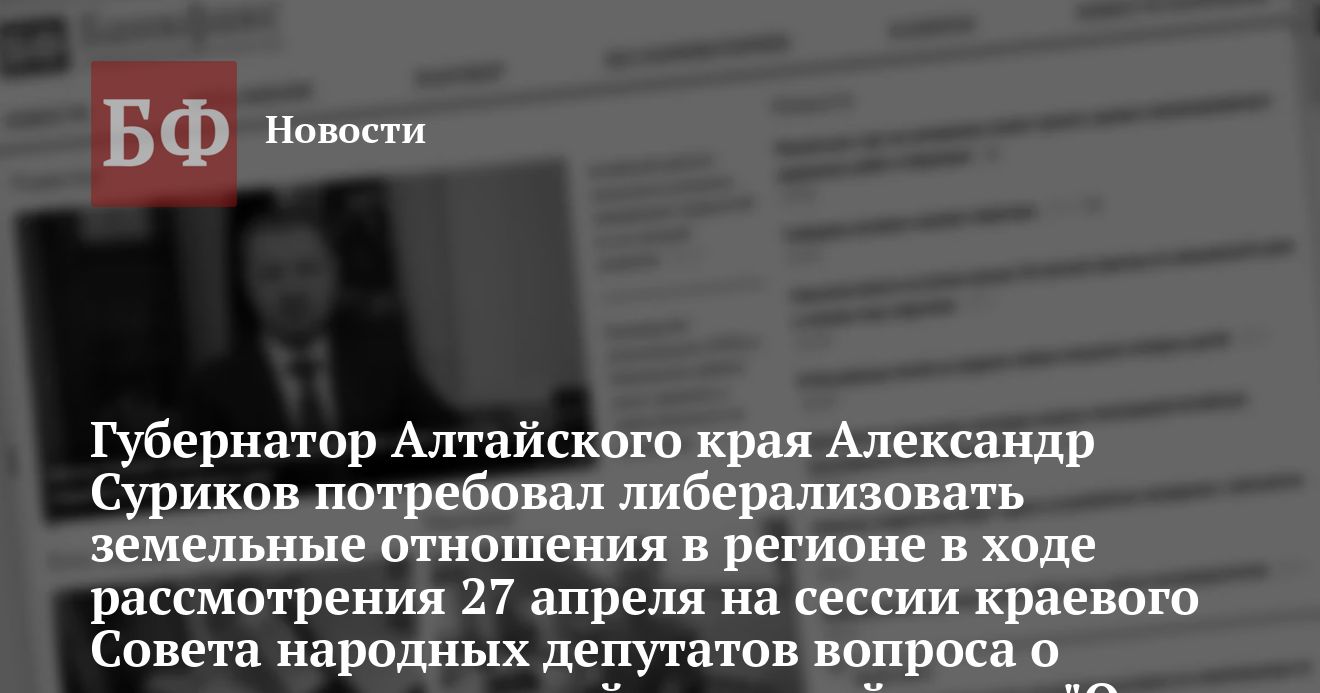 Как сообщила пресс-служба краевой администрации, высказывая свою точку зрения, глава администрации края Александр Суриков особое внимание обратил на то, что неразвитые земельные отношения тормозят рост промышленности. «Сегодня все политические силы страны признают, что у государства не хватает ресурсов для поднятия страны. Все согласны, что финансовые вложения со стороны иностранных инвесторов могли бы позитивно сказаться на развитии нашей экономики, но при этом считают, что они будут вкладывать деньги, не имея гарантии их сохранности. В данном случае гарантом выступит земля, на которой будет построено то или иное предприятие. Если мы запретим владеть землей иностранцам, то вынуждены будем вариться в собственном соку», отметил он.