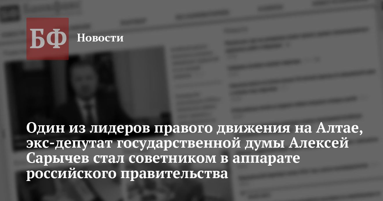 Как стало известно, не так давно депутат Государственной Думы первого созыва, один из лидеров алтайского демократического движения Алексей Сарычев стал советником департамента правительства РФ по связям с Федеральным Собранием.