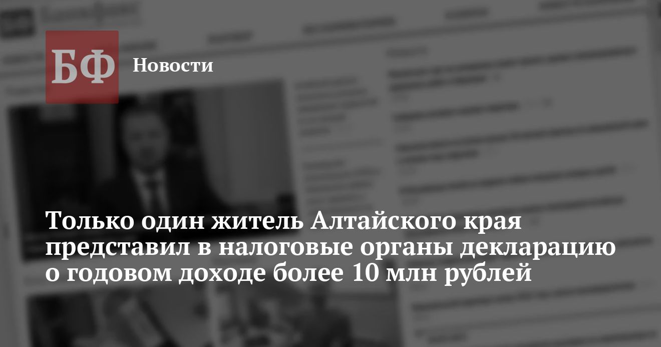 По данным Управления МНС РФ по Алтайскому краю, в ходе завершившейся декларационной компании налоговыми органами края получено почти 60 тысяч деклараций о доходах за 2000 год. Из них более 46 тысяч деклараций получено от предпринимателей, почти 3,5 тысячи от лиц, имеющих несколько источников доходов, 106 от нотариусов, 4от иностранных граждан, имеющих постоянное место жительства в России, и 1,3 тысячи деклараций от прочих физических лиц.