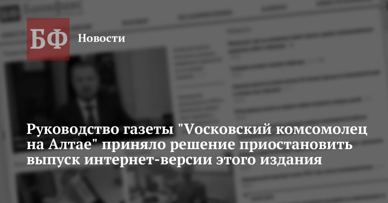 По словам руководителя «МК на Алтае» Анатолия Ивкина, редакцией газеты было принято принципиальное решение о приостановке выпуска онлайновой версии этой газеты (в последние месяцы своего существования газета имела порядка полутора тысяч посетителей в месяц). Как известно, в течении последних двух месяцев интернет-версия «МК на Алтае» не обновлялась без каких-либо объяснений.