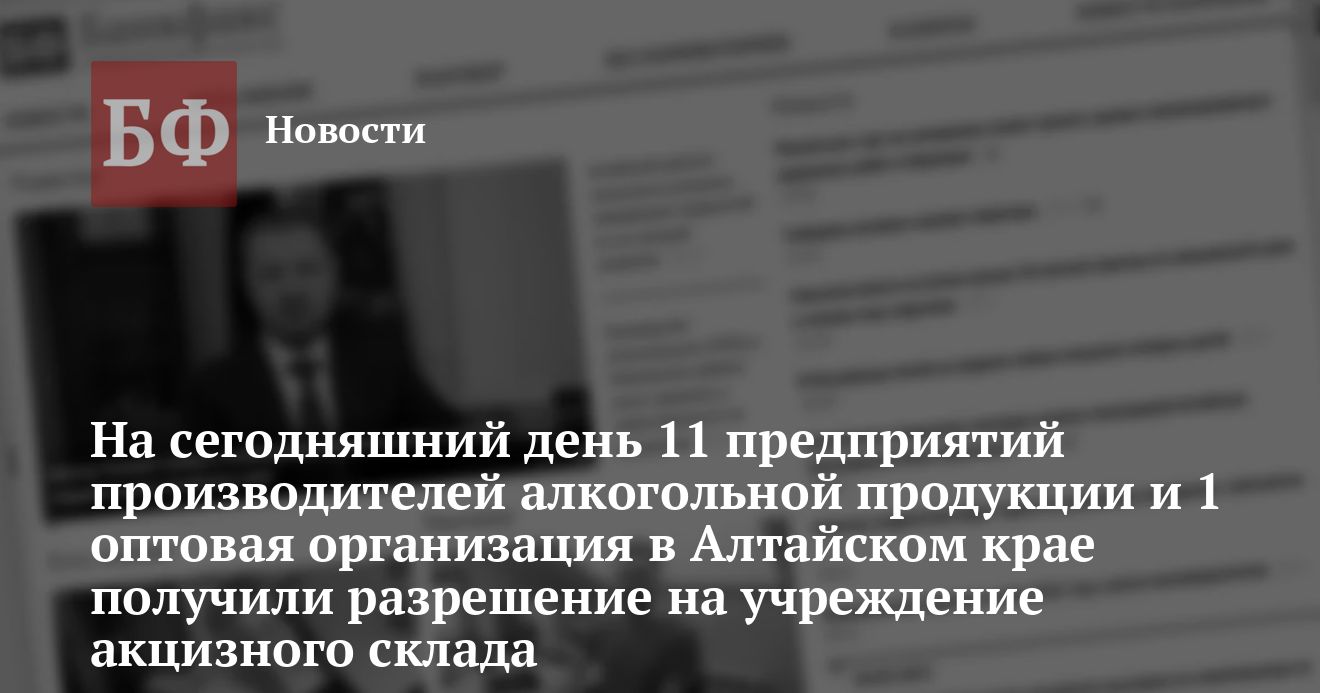 Следует добавить, что Алтайский край оказался в числе первых регионов, чьи предприятия-производители получили в Москве специальные разрешения на открытие акцизного склада.