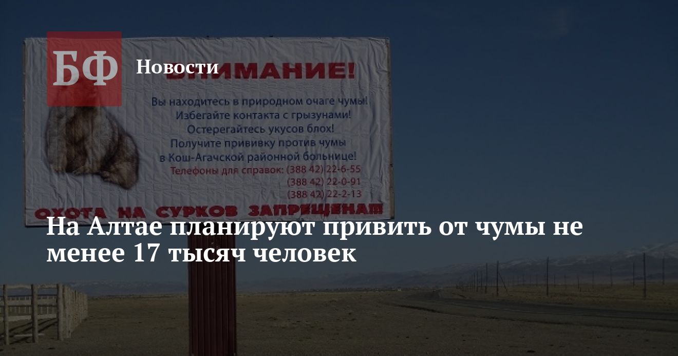 Чиновники также подчеркнули, что чума, может давать от 50 до 70% летальных исходов. Поэтому Управление Роспотребнадзора по Республике Алтай, Алтайская противочумная станция, медицинские работники призывают жителей района и всех, чья работа сопряжена с командировками в Кош-Агачский район, пройти вакцинацию.