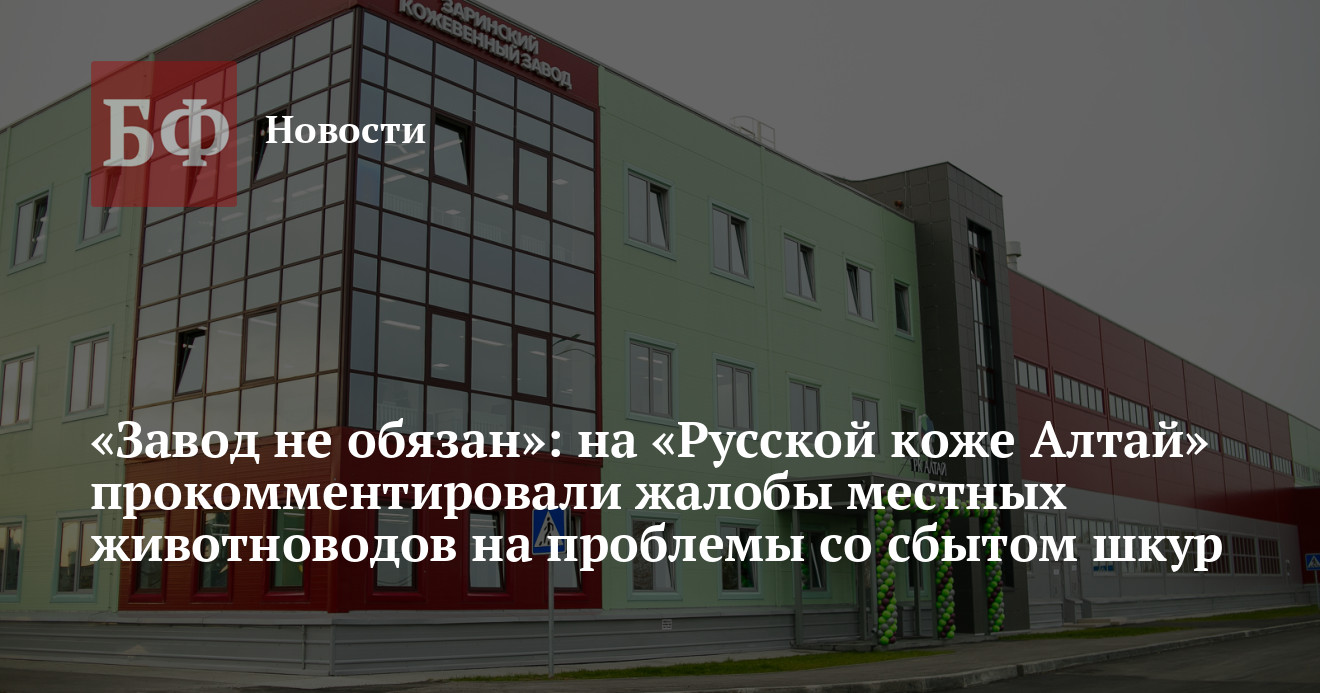 ООО «Русская кожа Алтай», расположенное в Заринске, прокомментировало жалобы аграриев и депутатов на проблемы со сбытом шкур скота в регионе. Те жаловались на низкие закупочные цены и нежелание местных профильных предприятий закупать их сырье при отсутствии альтернативных направлений сбыта. Заринский резидент территории опережающего социально-экономического развития поспорил с этими доводами, утверждая, что готов сотрудничать с местными поставщиками, и находит применение даже низкокачественному сырью. Падение цен на заводе в свою очередь объяснили последствиями пандемии.