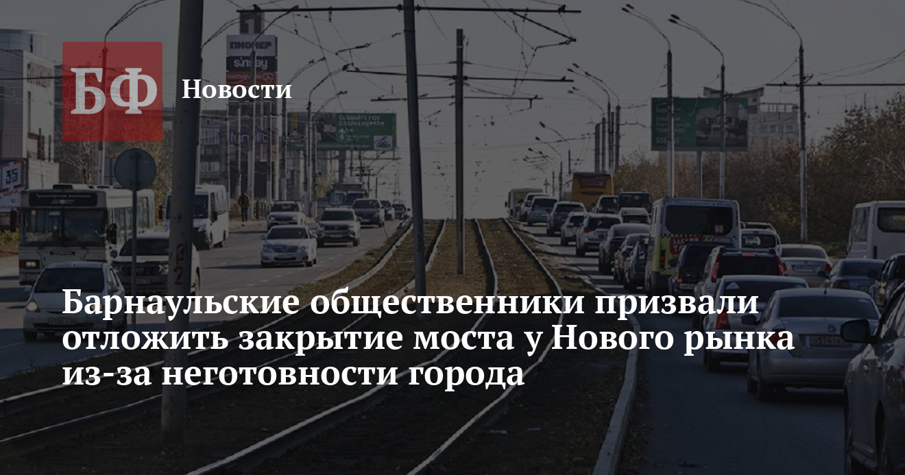 Городские активисты считают, что власти Барнаула не успеют подготовить дороги к озвученным срокам закрытия путепровода через ж/д пути на проспекте Ленина, поскольку к работе еще не приступали. Алтайское отделение общественной организации «Гражданский патруль» объявило о сборе подписей с призывом к мэрии о переносе закрытия моста с весны на осень и ускоренной реорганизации движения транспорта. Также они высказали ряд идей, применение которых, по их мнению, может сгладить грядущий коллапс.