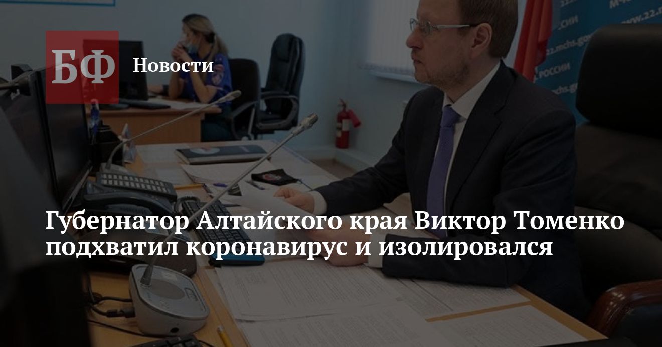 10 февраля губернатор получил положительный тест на COVID-19. Отмечается, что Томенко чувствует себя хорошо, симптомы болезни пока не проявились. Несмотря на это, он ушел на изоляцию. Несколько дней глава Алтайского края будет работать на удаленке. В режиме работы кабмина изменений не произошло.