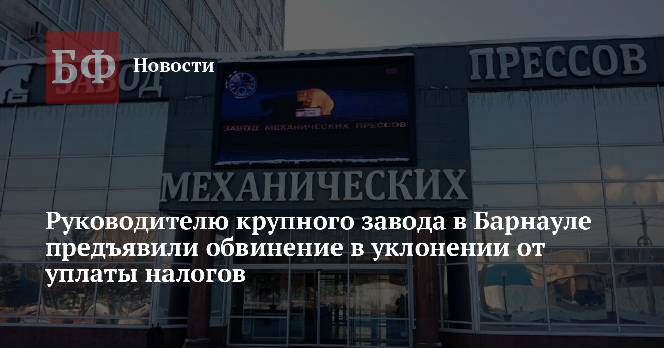 Третий отдел по расследованию особо важных дел СУ СКР по Алтайскому краю предъявил обвинение фактическому руководителю общества с ограниченной ответственностью «Завод механических прессов» Сергею Ферапонтову. Ему вменяют уклонение от уплаты налогов. Предприятие не доплатило в казну несколько десятков миллионов рублей. Преступление было выявлено сотрудниками Управления ФСБ России по региону.