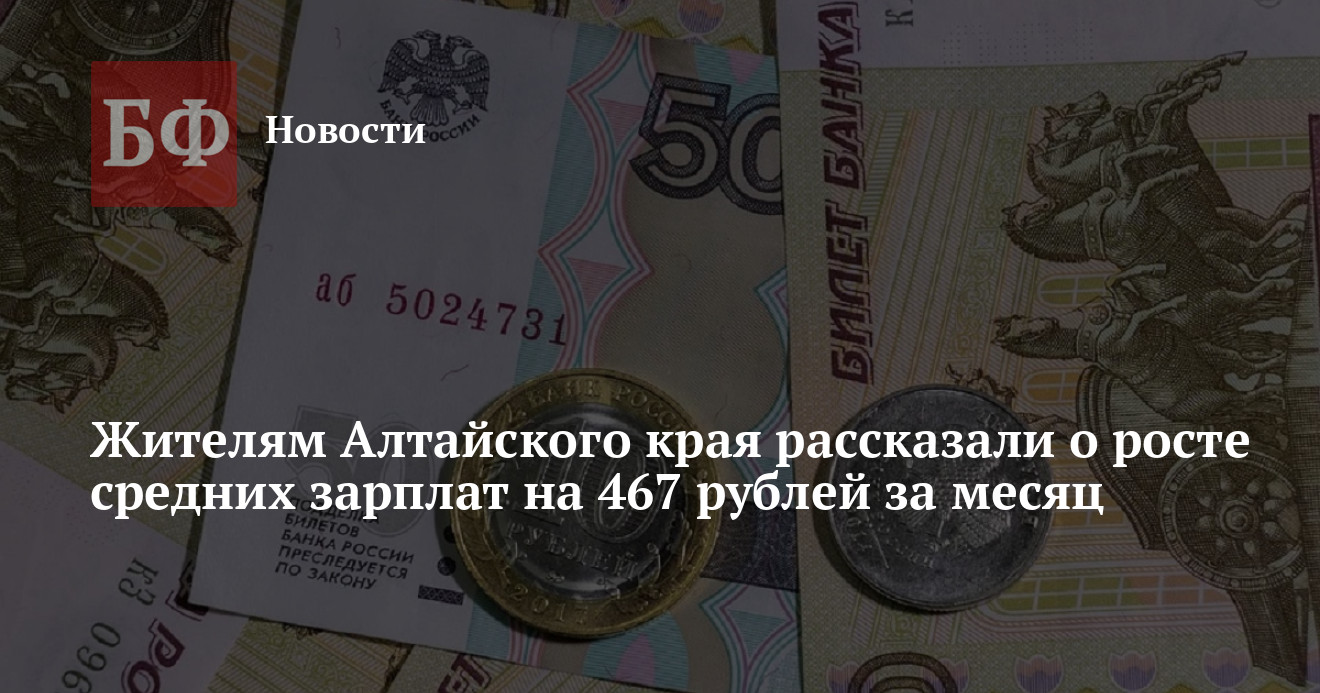 Среднемесячная заработная плата в Алтайском крае по итогам 11 месяцев 2021 года незначительно увеличилась. Согласно приведенным Алтайкрайстатом сведениям, по сравнению с предыдущим периодом она выросла на 467 рублей.