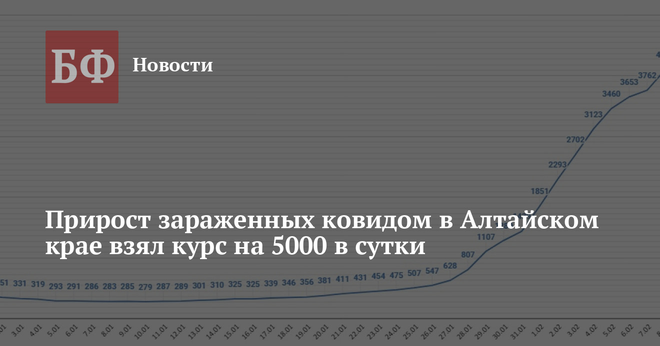 10 февраля в регионе зарегистрировали 4616 положительных результата теста на COVID-19. По муниицпалитетам: Барнаул — 2284, Бийск — 257, Рубцовск — 117, Камень-на-Оби -79, Новоалтайск — 76, Заринск — 70, Белокуриха — 56, Алейск — 52, Славгород — 49, Алейский и Немецкий национальный районы — 41, Локтевский, Завьяловский, Шелаболихинский, Тальменский районы — 39, Михайловский район — 38, Егорьевский, Советский, Кулундинский районы — по 37, Хабарский район — 36, Зональный район — 35, Змеиногорский, Родинский, Благовещенский, Шипуновский, Косихинский районы — 34, Панкрушихинский, Поспелихинский, Краснощековский, Мамонтовский, Калманский районы — по 33, Залесовский, Красногорский, Третьяковский, Алтайский, Чарышский районы — 32, Ребрихинский, Усть-Калманский район — 31, Троицкий район — 30, Топчихинский, Солонешенский, Бурлинский районы — 29, Волчихинский район — 28, Павловский и Смоленский, Угловский районы — 27, Первомайский район — 26, Быстроистокский район — 25, Тюменцевский район — 24, Бийский район — 23, Романовский район — 22, Рубцовский и Крутихинский районы — 23, Новичихинский и Кытмановский районы — 21, Курьинский район — 18, Усть-Пристанский район — 18, Каменский и Целинный районы — 15, Ключевский район — 14, Заринский район — 12, Табунский район — 11, Баевский район — девять, Ельцовский район — семь, Тогульский район — шесть, Солтонский район — два.