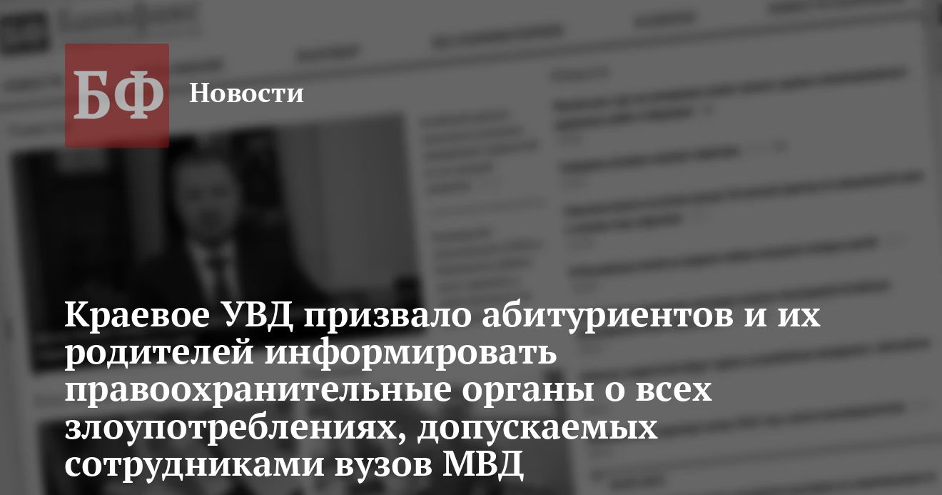18 июля пресс-служба ГУВД Алтайского края распространила еще одну информацию, касающуюся работы милиции с жалобами от населения. На сей раз краевое УВД обратилось к абитуриентам, поступающим в Барнаульский юридический институт и прочие вузы МВД РФ, а также к родителям абитуриентов с просьбой информировать о выявлении фактов злоупотребления своим служебным положением среди преподавательского состава этих вузов. Кроме того, абитуриентов призвали обращаться в правоохранительные органы в случае возникновения каких-либо спорных вопросов при поступлении в вузы Министерства внутренних дел.