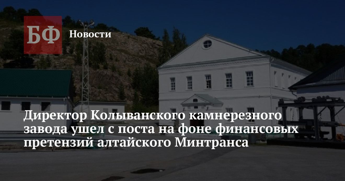 На Колыванском камнерезном заводе произошла смена руководства. Бессменный на протяжении многих лет начальник предприятия Андрей Михеев ушел по собственной инициативе, сообщил Минтранс Алтайского края в ответе на запрос ИА «Банкфакс». Сразу после увольнения министерство подало иск к бывшему директору на 273 тысячи рублей. Также стало известно о планах властей по реорганизации юрлица завода, существующего в форме ГУП, в акционерное общество.