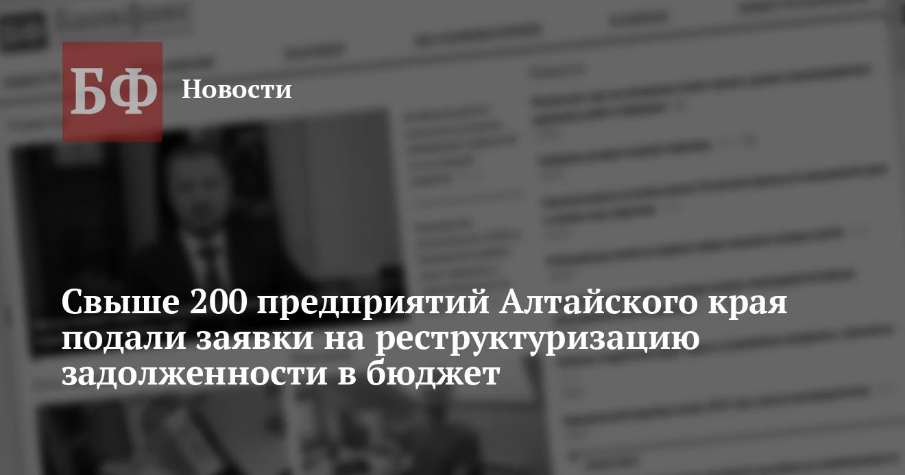 Как сообщил начальник отдела по взысканию недоимки по налогам и сборам Управления МНС РФ по Алтайскому краю Евгений Баньковский, по предварительным данным на 10 сентября на Алтае более 200 предприятий изъявили желание реструктуризировать свои долги в консолидированный бюджет. Это как промышленные, так и сельскохозяйственные предприятия. Решений о реструктуризации принято пока немного, поскольку основная масса предприятий подала заявления в августе, а на вынесение решения налоговым органам отводится месяц.