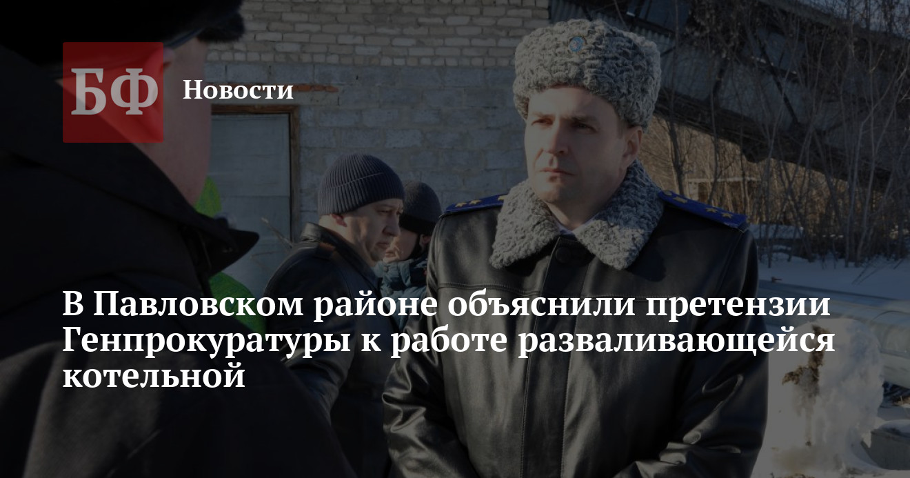 Накануне заместитель генпрокурора РФ Дмитрий Демешин посетил с рабочим визитом Павловский район, где раскритиковал работу местной администрации и муниципального предприятия за аварийное здание котельной. Как сообщила пресс-служба прокуратуры, он также потребовал разобраться в ситуации и обратиться с иском в суд. И. о. главы района Владимир Юдаков рассказал ИА «Банкфакс» о планах по строительству нового отопительного предприятия, которое может продлиться около двух лет.