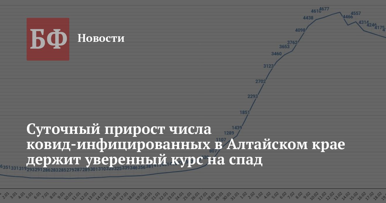 Из 3534 новых случаев заражения 1458 выявили среди жителей Барнаула, 192 — в Бийске, 167 — в Рубцовске, 106 — в Заринске, 88 — в Славгороде, 81 — в Камне-на-Оби, 65 — в Новоалтайске, 50 — в Ребрихинском районе, по 49 — в Бийском и Топчихинском районах, по 48 — в Змеиногорском и Первомайском районах, по 47 — в Благовещенском и Павловском районах, по 45 — в Тальменском, Тогульском и Романовском районах, по 42 — в Кулундинском и Завьяловском районах, 39 — в Усть-Калманском районе, по 37 — в Алейском, Локтевском, Мамонтовском и Залесовском районах, 26 — в Зональном районе, 25 — в Родинском районе, 24 -в Смоленском районе, по 23 — в Косихинском и Поспелихинском районах, 22 — в Третьяковском районе, по 21 — в Троицком, Чарышском, Волчихинском, Калманском, Ключевском и Петропавловском районах, 20 — в Быстроистокском районе, 19 — в Бурлинском районе, по 18 — в Табунском, Усть-Пристанском, Целинном, Курьинском и Советском районах, 17 — в Новичихинском районе, по 16 — в Рубцовском и Немецком национальном районах, 15 — в Шипуновском районе, по 13 — в Шелаболихинском, Солтонском и Красногорском районах, 12 — в Угловском районе, по 11 — в Алтайском, Заринском и Михайловском районах, 10 — в Крутихинском районе, по девять — в Алейске и Панкрушихинском районе, по восемь — в Каменском и Хабарском районах, по семь — в ЗАТО Сибирском, Баевском и Солонешенском районах, шесть — в Краснощековском районе, пять — в Тюменцевском районе, по три — в Ельцовском и Кытмановском районах, по два — в Белокурихе и Егорьевском районе, один — в Суетском районе.