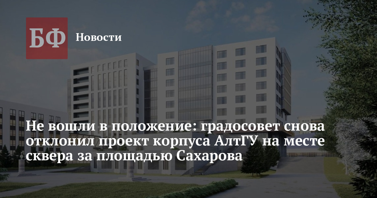 3 марта в Барнауле состоялось очередное заседание градостроительного совета. Он вновь рассматривал проект нового корпуса АлтГУ, который вуз хочет построить на месте сквера за площадью Сахарова. Как пишет «Амител», его уже во второй раз отклонили, поскольку, по мнению некоторых членов совета, с прошлого заседания проект стал только хуже, а его авторы так и не исправили большую часть замечаний.