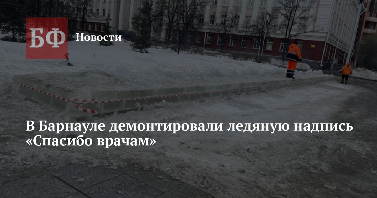 Как пояснили в мэрии, с приходом теплой погоды ледяные буквы «Спасибо врачам», установленные на площади Советов, начали таять. Решение о демонтаже конструкции было принято для того, чтобы избежать аварийной ситуации. 7 марта ее разбирали работники барнаульского МБУ «Автодорстрой».