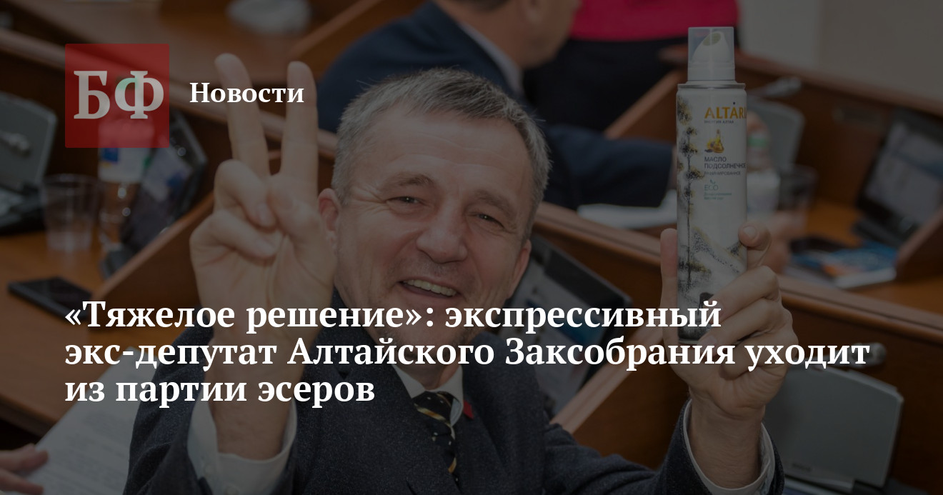 Напомним, что Василий Железовский в прошлом созыве избирался в Алтайское Заксобрания по спискам справедливороссов. Тогда тоже не обошлось без скандала — к первой сессии не получил мандат, поскольку его заявление о сложении полномочий депутата Каменского горсовета на тот момент еще не было рассмотрено. За годы депутатства в АКЗС политик получил известность за счет смелых, иногда резких высказываний, экспрессивного поведения и активной политической деятельности. После окончания созыва Железовский стал депутатом Каменского райсобрания, избравшись в сентябре 2021 года по второму одномандатному округу.