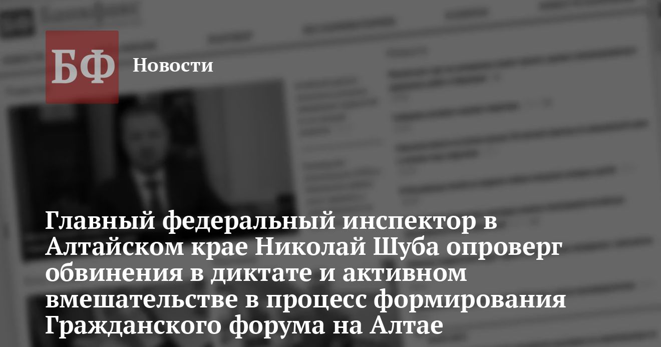 По словам Главного федерального инспектора, процесс формирования ГФ на Алтае пошел «не по конструктивному руслу», поэтому Шуба, как представитель федеральной власти в регионе, был вынужден «взять на себя ответственность» и вмешаться в эту ситуацию. Николай Шуба заявил, что никакого давления на оргкомитет с его стороны оказано не было. Более того, по его словам, ни о каких выборных моментах в процедуре создания ГФ речи идти не может, так как все вопросы (в том числе, кстати, и выдвижение делегатов от Алтайского края на общероссийский съезд ГФ) решаются исключительно центральным оргкомитетом в Москве.