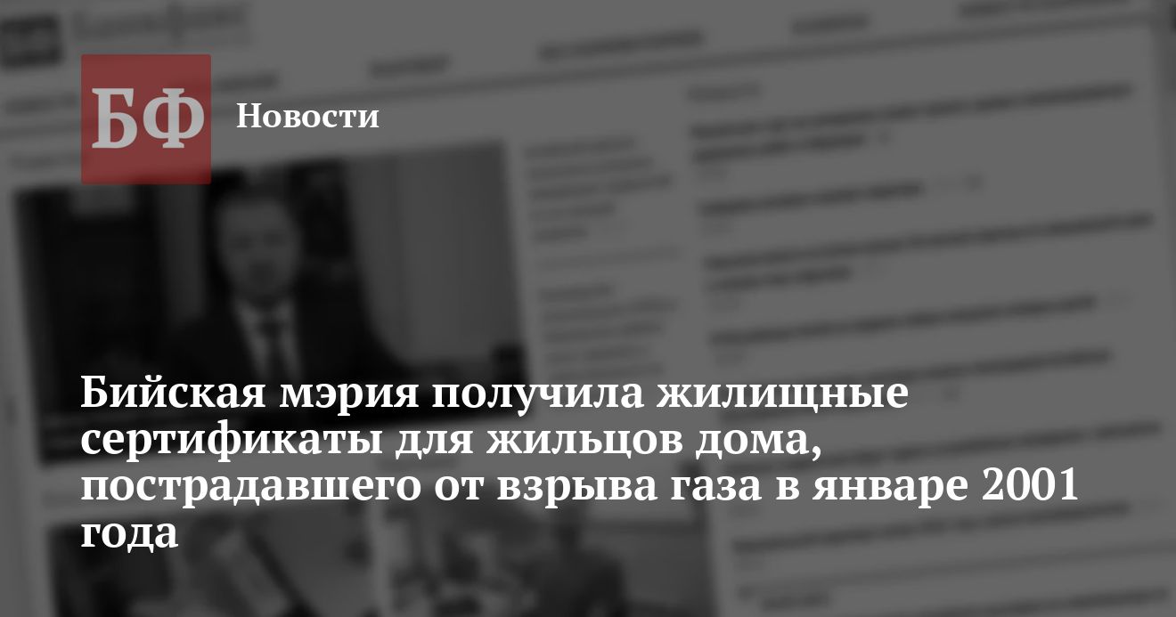 Как стало известно, на минувшей неделе в администрацию города Бийска поступили жилищные сертификаты, предназначенные жильцам дома N2 по улице Кошевого (в январе 2001 года этот дом был практически полностью разрушен в результате взрыва газа, произошедшего в одной из квартир).