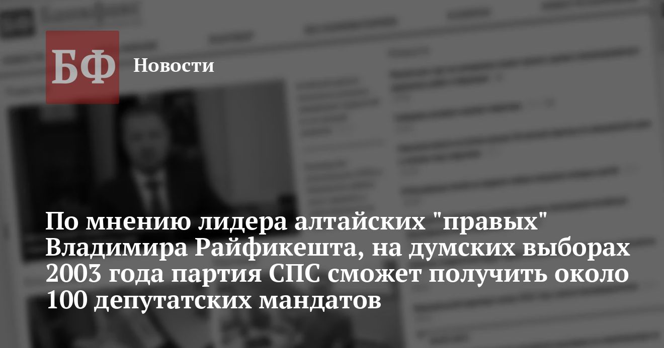 Рассуждая о перспективах «правого» движения в России, Владимир Райфикешт высказал мнение о том, что при грамотно выстроенной и активной партийной работе СПС может получить в Госдуме следующего созыва около 100 депутатских мандатов.
