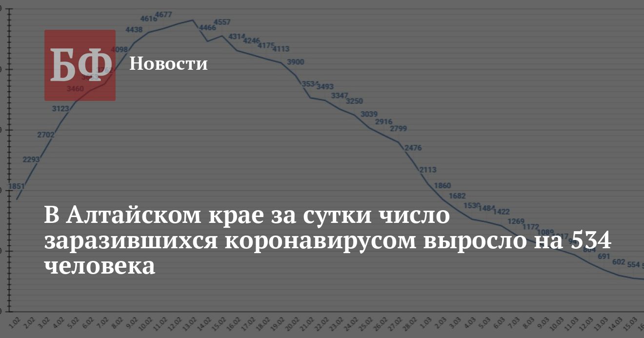 Наибольший вклад в 534 случая заражения за сутки внес, как и всегда, Барнаул — 143 заразившихся. Из других муниципалитетов никто, кроме Славгорода (22 случая за день) не смог перешагнуть отметку в 20 заразившихся. С учетом этого, в Алтайском крае за все время пандемии заразился 255 881 человек, выздоровели — 236 146. Умерли 9811 пациентов, в том числе 16 — за последние сутки. Из них 8310 скончались непосредственно от COVID-19, а еще 1501 — по иным причинам.