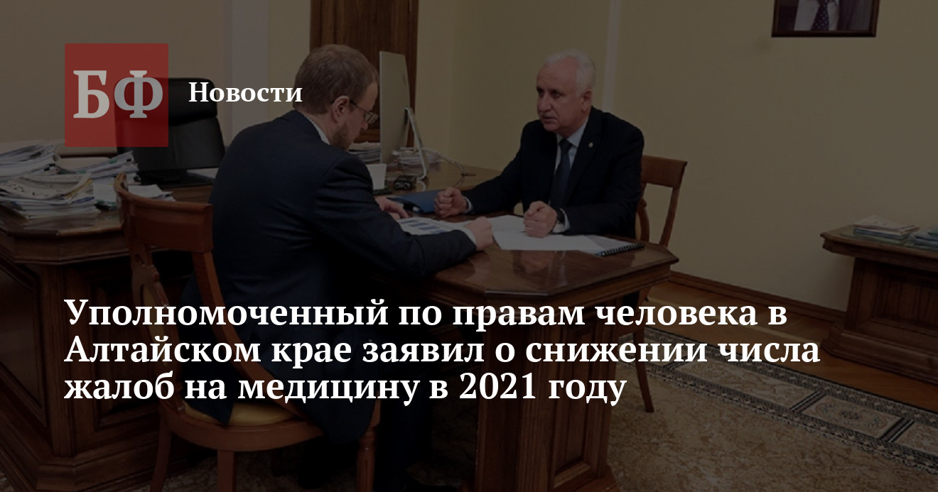 По итогам 2021 года в Алтайском крае существенно сократилось количество жалоб на работу медучреждений. Об этом губернатору Виктору Томенко доложил уполномоченный по правам человека в регионе Борис Ларин. С его слов, в целом ситуация с соблюдением прав граждан остается стабильной.