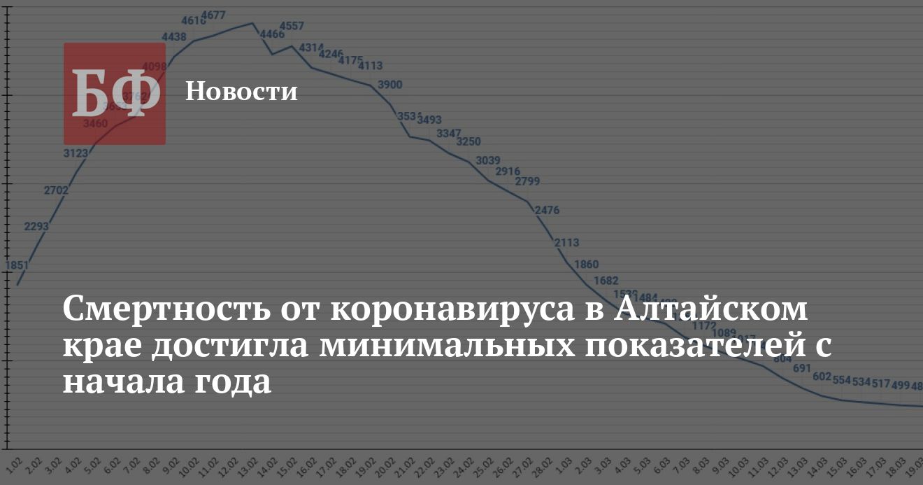 В Алтайском крае суточная смертность от коронавируса к 20 марта уменьшилась до 10 человек в день. Это самый низкий показатель с начала 2022 года. Кроме того, за три прошедших дня заболеваемость опустилась ниже 500 случаев в сутки.