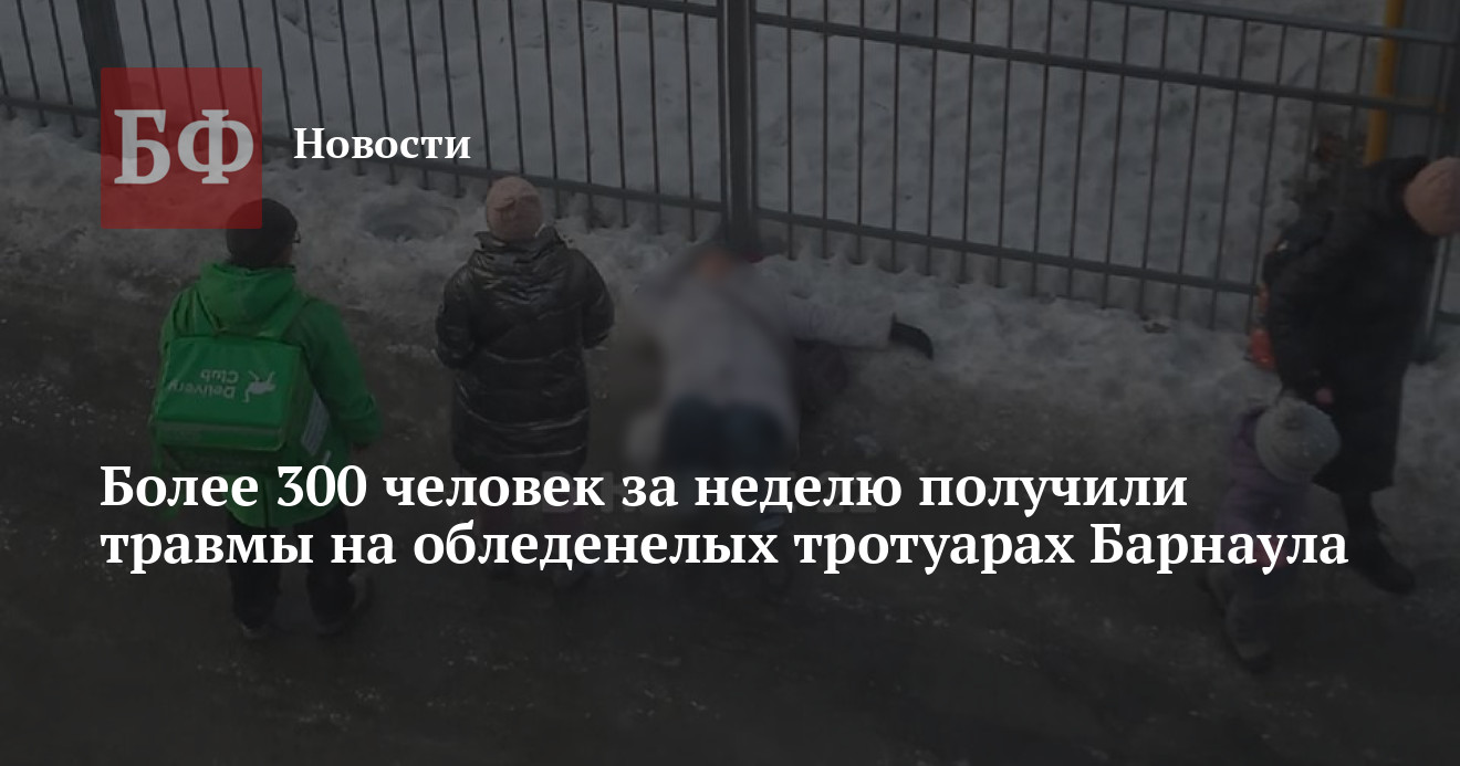 В Барнауле с 14 по 20 марта из-за падения на обледеневших улицах получили травмы более 300 человек, из них 34 были госпитализированы, сообщают «Вести-Алтай». Таким образом, в среднем ежедневно жертвами гололеда в городе становятся более 40 человек. По словам дорожников, бороться с наледью им мешают постоянные перепады температур.