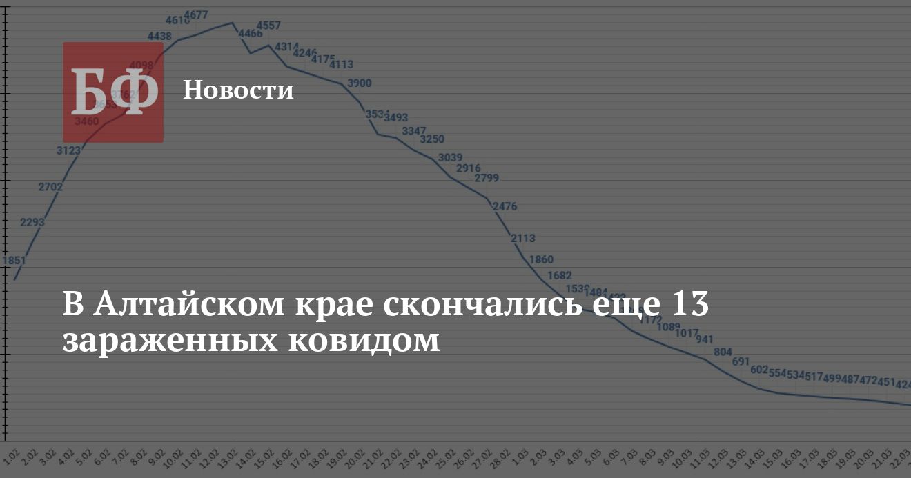 В Алтайском крае за минувшие сутки выявили 401 новый случай заражения коронавирусной инфекцией. Об этом сообщает оперативный штаб региона в своем официальном Telegram-канале. В тот же день зарегистрировано 13 смертей среди заболевших.