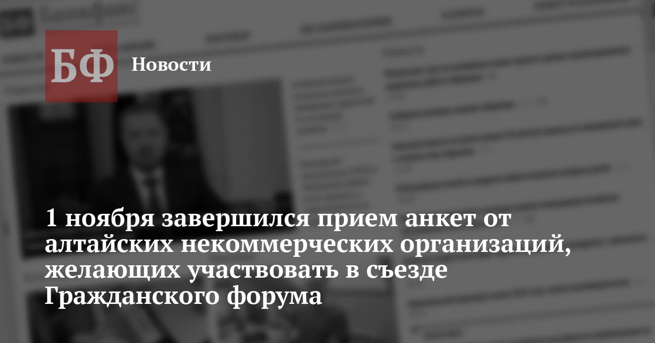 Как заявила председатель регионального Оргкомитета ГФ, руководитель АКОО «Центр социальной поддержки и защиты граждан «Милосердие» Екатерина Абрамова, 1 ноября текущего года завершился прием анкет алтайских НКО, желающих участвовать в съезде ГФ. Как уже сообщалось, это мероприятие состоится 21−22 ноября в Москве). Предполагается, что 10 ноября Центральный Оргкомитет съезда озвучит свое решение о составе алтайской делегации. Планируемая квота 27 делегатов.