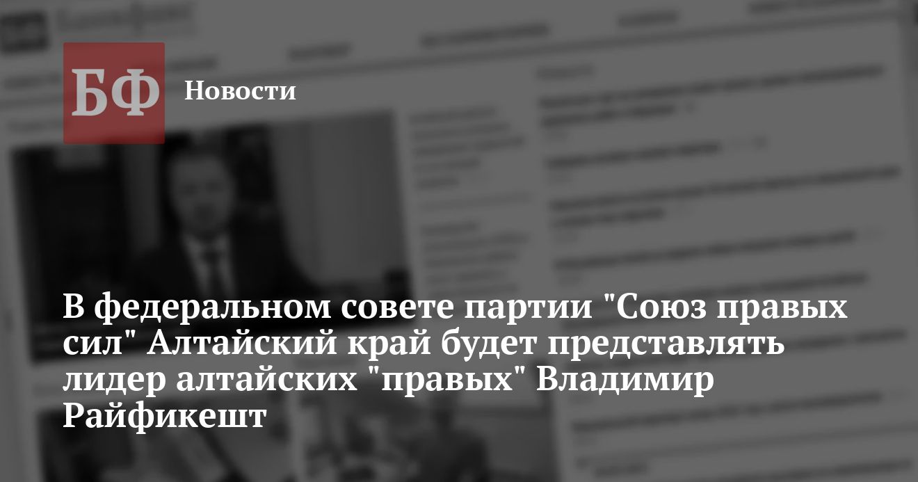Что касается процедуры избрания алтайского представителя в Совет партии, то им стал лидер местных демократов Владимир Райфикешт. Следует отметить, что, по словам зампредседателя политсовета краевого отделения СПС Юрия Еремеева, «правыми» был существенно нарушен порядок голосования. Хотя в федеральный Совет от Алтайского края выдвигались два кандидата сам Владимир Райфикешт и профессор Алтайского аграрного госуниверситета Альбина Колобова голосование по непонятным причинам производилось лишь по первой кандидатуре.