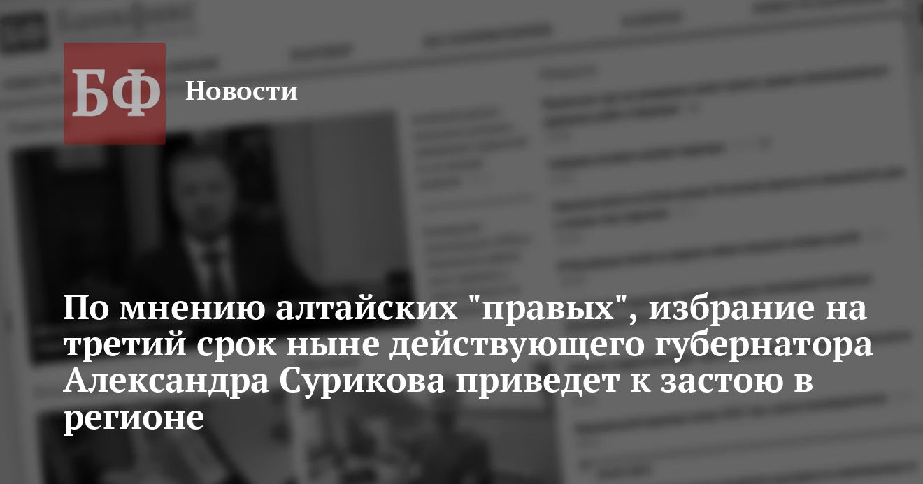 По мнению «правых», отмена ограничений является «еще одним примером исправления законов в угоду некой „целесообразности“, за которой стоит интерес определенных финансовых групп, желающих сохранить монополию на власть». Представители Алтайской организации СПС неоднократно заявляли, что с внесением данной поправки в Устав края вопрос о том, намерен ли ныне действующий губернатор Александр Суриков участвовать в выборах в третий раз, автоматически решается положительным образом.