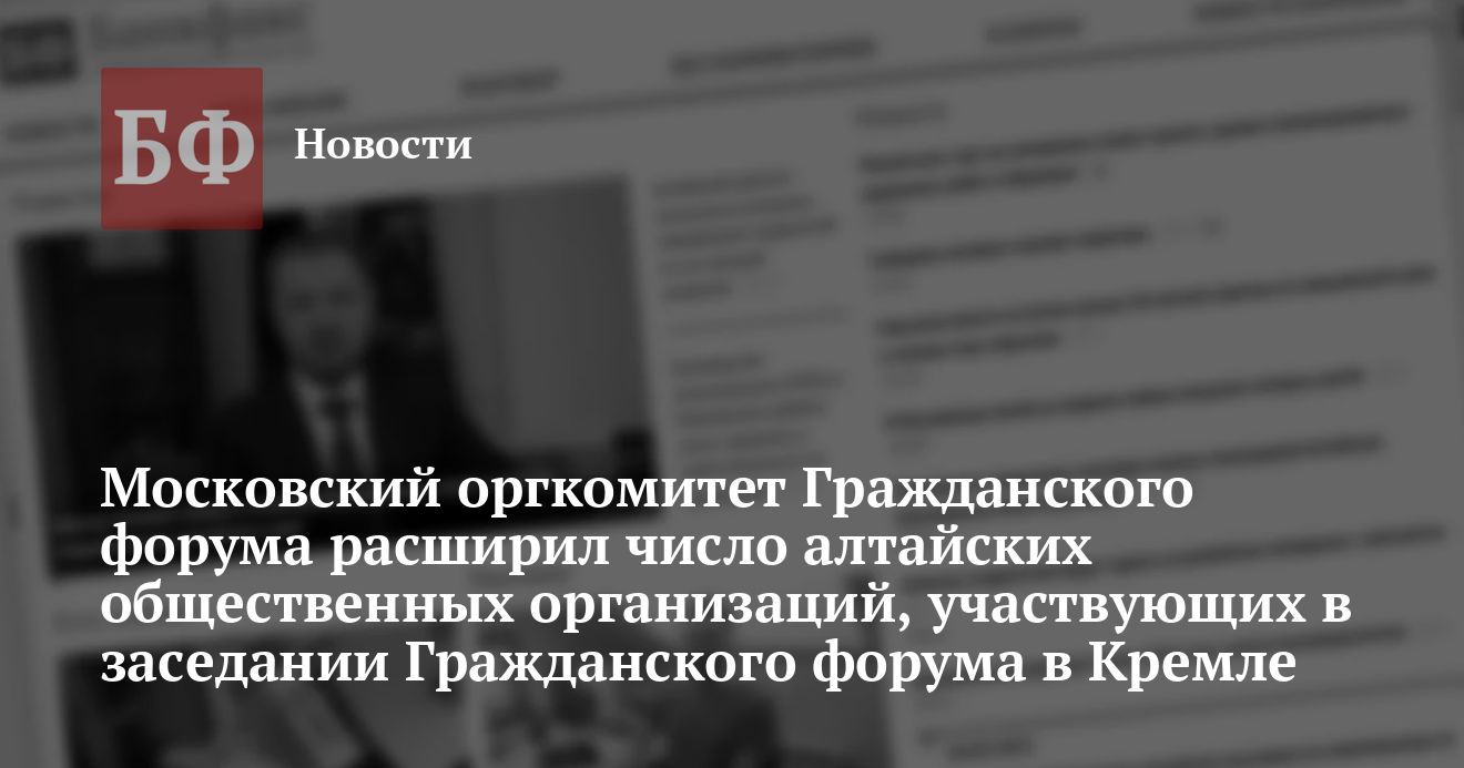 13 ноября в Барнаул поступил список из 40 представителей некоммерческих организаций, приглашенных на форум (ранее в качестве региональной квоты фигурировала цифра 27 человек). Предполагается, что эта группа в оставшиеся до начала форума дни также может быть увеличена за счет около 1000 еще не распределенных мест.