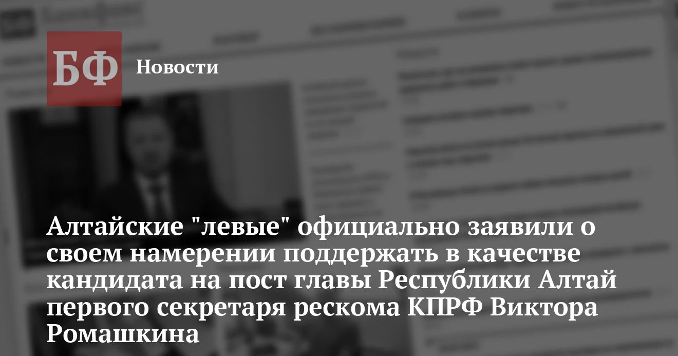 В частности, членами крайкома КПРФ было принято принципиальное решение о поддержке в качестве кандидата на пост главы Республики Алтай первого секретаря рескома КПРФ Виктора Ромашкина. Как уже сообщалось, первоначально Ромашкин намеревался отказаться от участия в выборах главы РА в пользу лидера Аграрной партии России Михаила Лапшина.