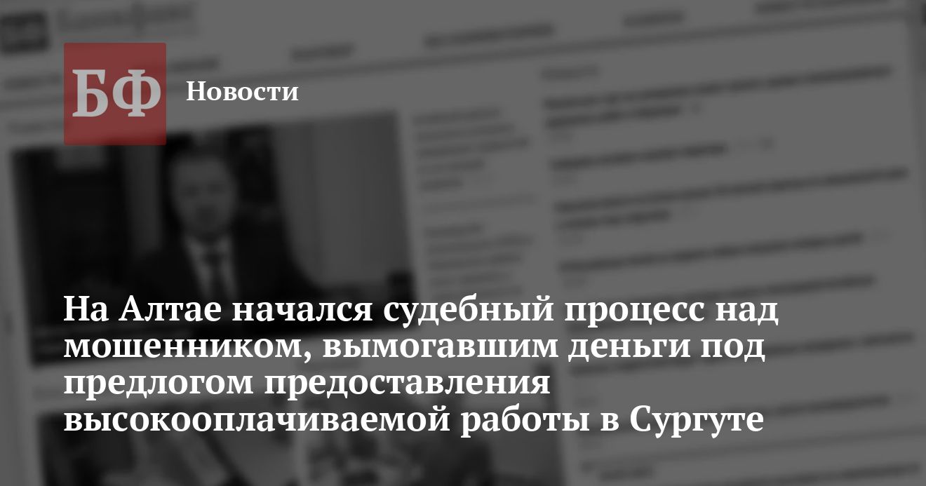 Как сообщила старший следователь Октябрьского РОВД Барнаула Елена Соклакова, 18 декабря в Октябрьском районном суде начался судебный процесс над мошенником, вымогавшим деньги у населения под предлогом предоставления высокооплачиваемой работы в Сургуте.